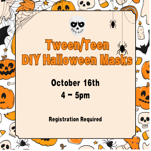 Get into the spooky spirit and create your own unique Halloween mask! We’ll provide all the supplies you need, from plain masks to a variety of paints, glitter, feathers, and more. Whether you’re going for something creepy, glamorous, or just plain weird, this is your chance to let your creativity shine.