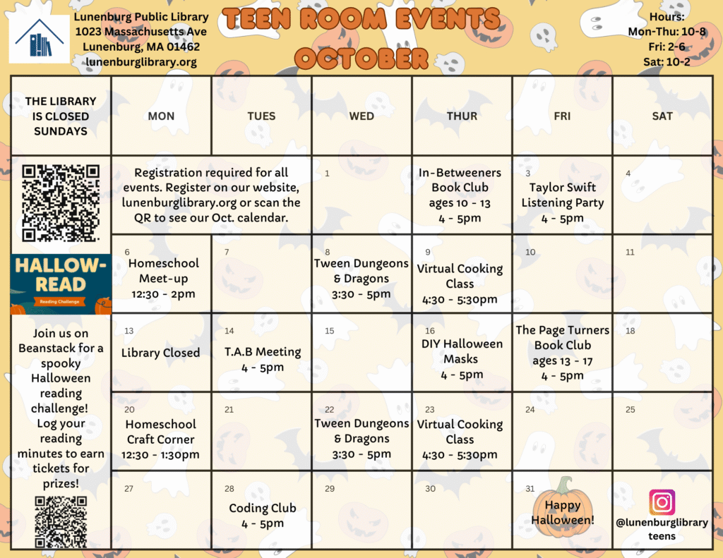 Join us on Beanstack for a spooky Halloween reading challenge! October 1st – 31st
