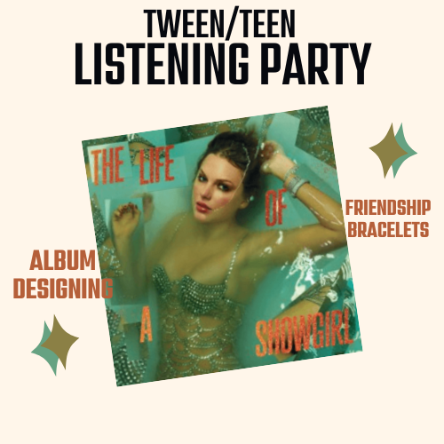 Come listen to Taylor Swift’s newest album “The Life of a Showgirl” with us! Join us for a listening party as we make friendship bracelets and design our own album covers.
